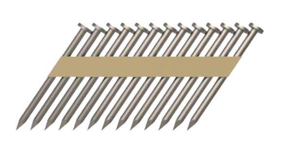 Nails in 28 degrees with wire weld strip collation.